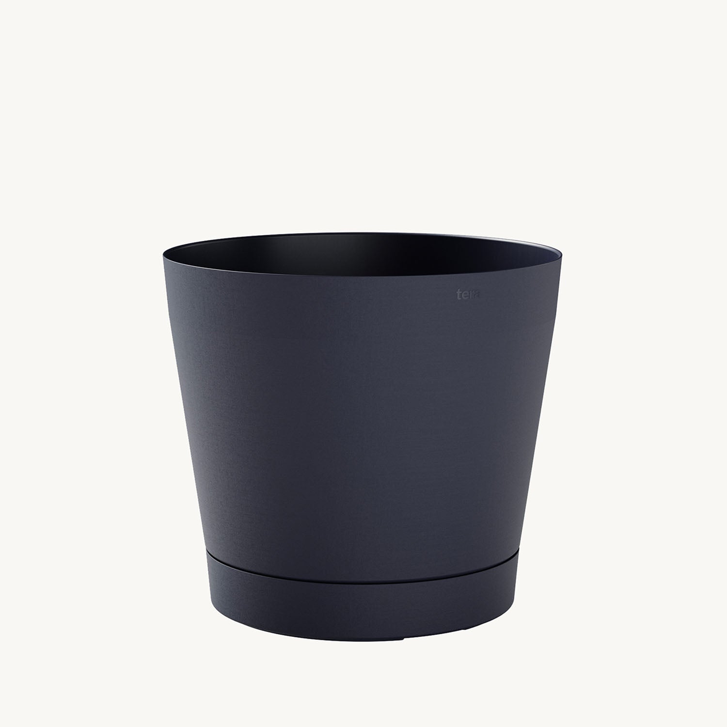 Orione is an elegant pot with a gently tapered shape and a matte surface. It is made in Italy from 100% recycled and recyclable plastic, lightweight and suitable for both indoor and outdoor use.