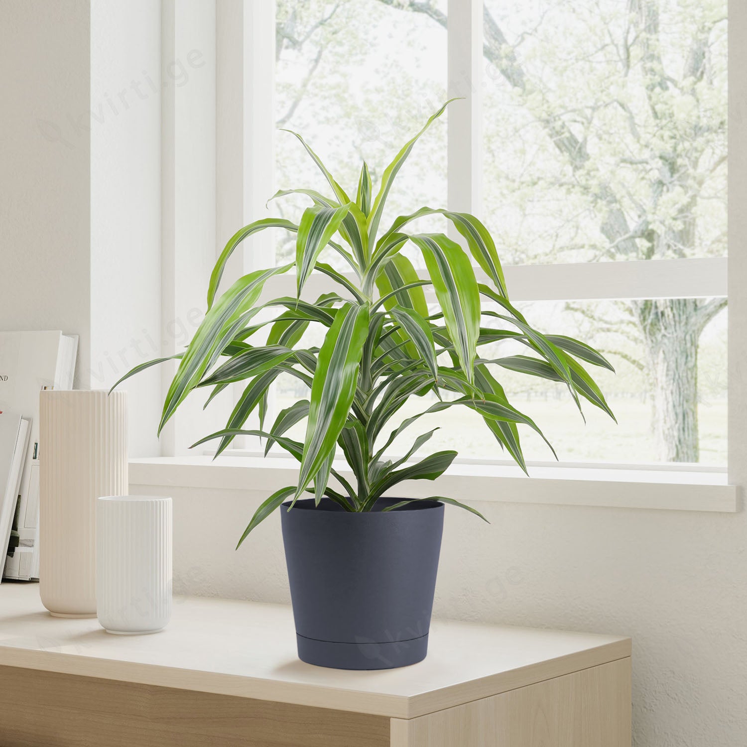 The pot has a built-in saucer that collects excess water at the bottom, simplifying care and keeping surfaces clean. It is also UV and frost resistant, ensuring reliable use throughout the seasons.