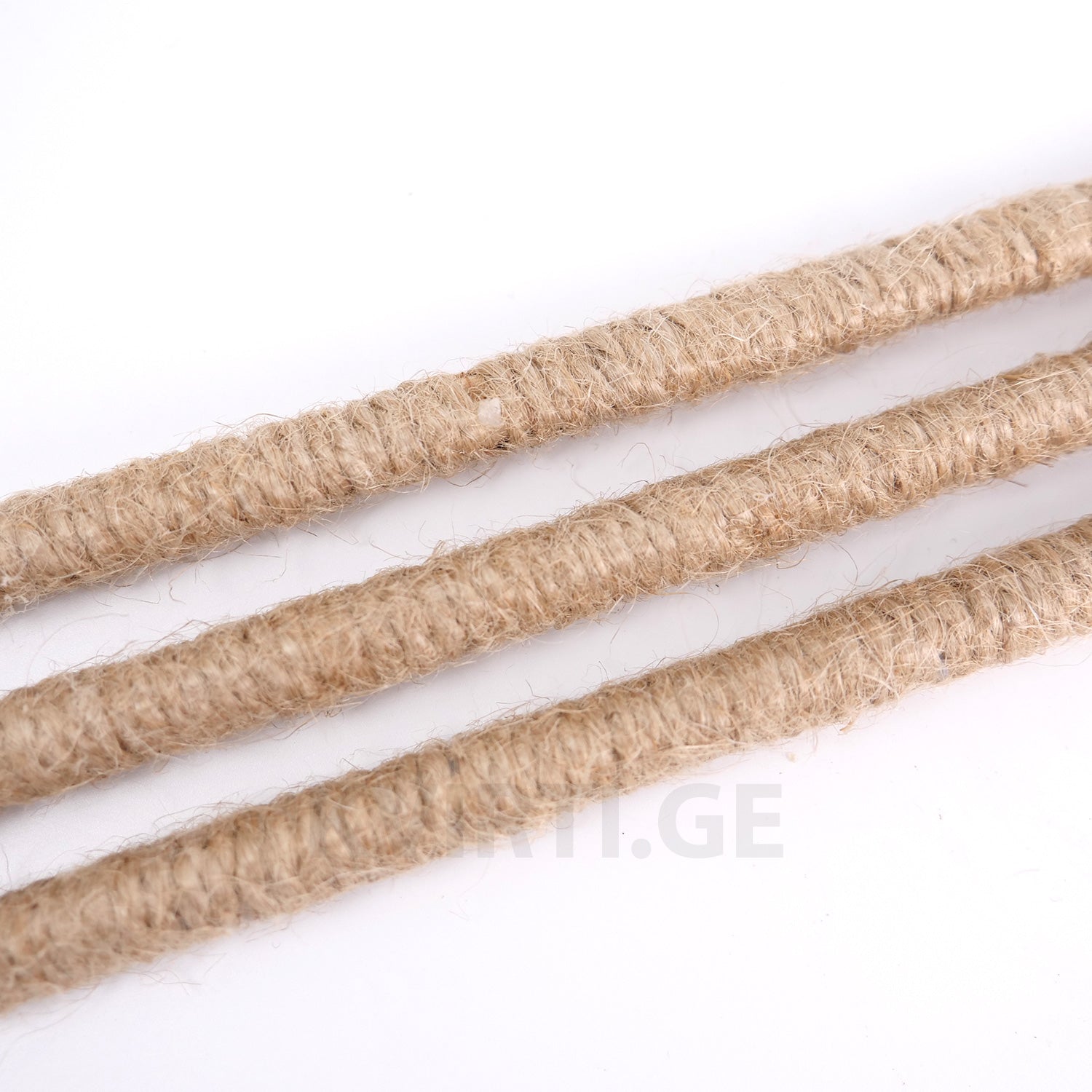 ოთახის ყვავილების ხის ჩხირები, შემოხვეული ნატურალური ჯუთის თოკით.