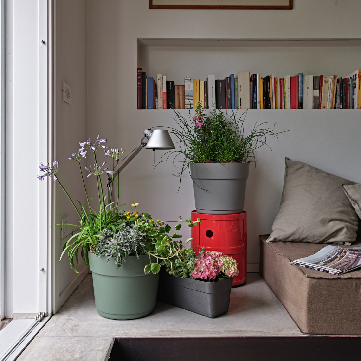 ქოთანი აღჭურვილია კომპაქტური წყლის სარეზერვუარო სისტემით მცენარეთა ჯანსაღი დატენიანების უზრუნველსაყოფად, ხოლო ძირში მდებარე ფოთლის ფორმის საცობი საშუალებას გაძლევთ გახსნათ ან დახუროთ სადრენაჟე ხვრელი ქოთნის განთავსების ადგილის გათვალისწინებით.