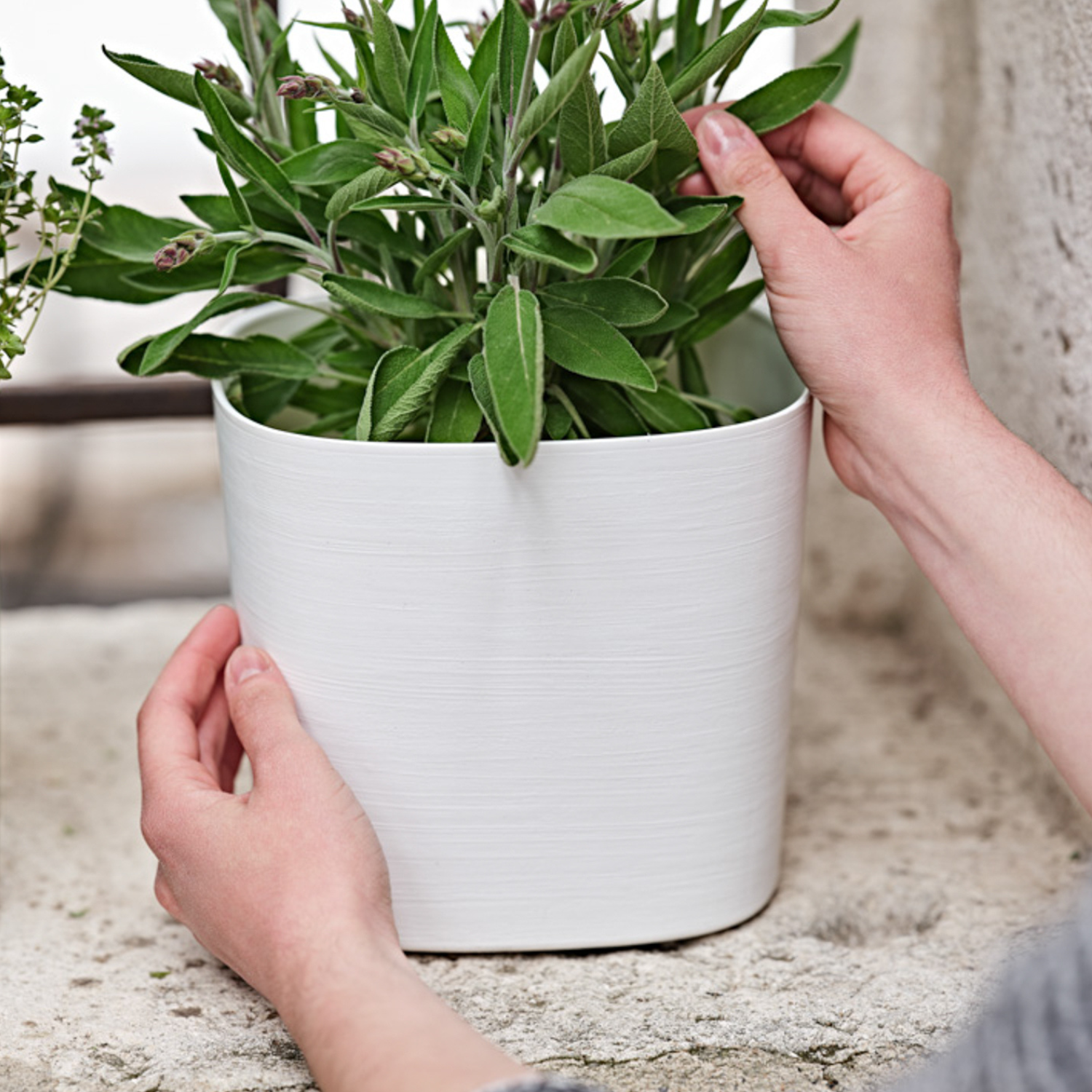 ქოთანი „კაპრი“ პრემიუმ კლასის ნაწარმია, აქვს კვადრატული ფორმა ოდნავ მომრგვალებული კიდეებითა და გლუვი ტექსტურის მქონე ზედაპირი. დაბალანსებული პროპორციები მას თანამედროვე და იმავდროულად მარადიულ ხიბლს ანიჭებს, რაც მრავალი ტიპისა და სტილის მცენარეებისთვის შესაფერისს ხდის.