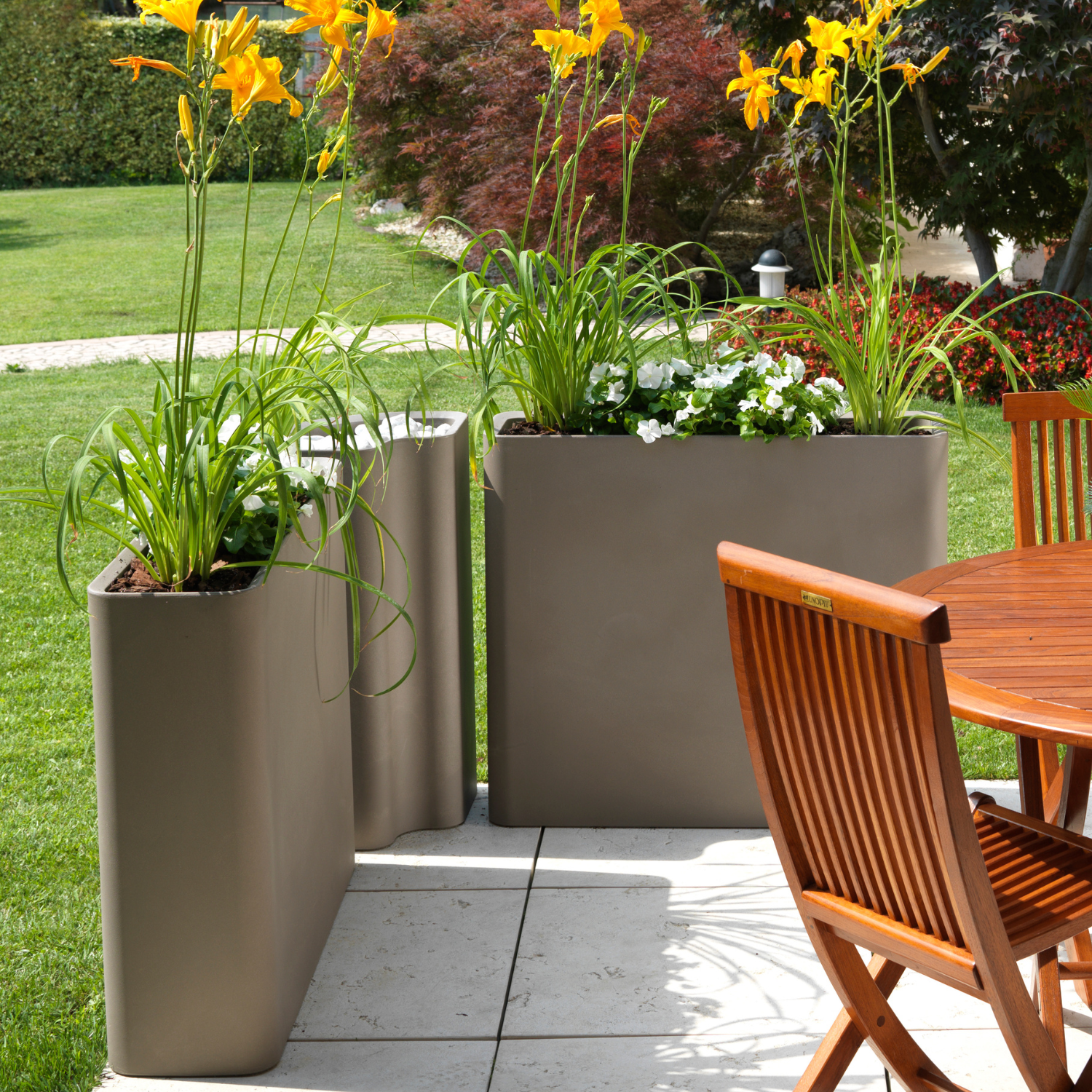 „დივიო“ არის გამძლე, ვიწრო მართკუთხა ფორმის საყვავილე გამოკვეთილი და მომრგვალებული კონტურებით, რაც მას თანამედროვე ინტერიერებსა და გარე სივრცეებში გამოყენებისთვის უნივერსალურს ხდის. წაგრძელებული ფორმის წყალობით, ის იდეალურია შესასვლელების გამოსაკვეთად, ტერასის ჩარჩოების შემოსავლებად ან დიდ ფართობებზე ზონების გასამიჯნად.
