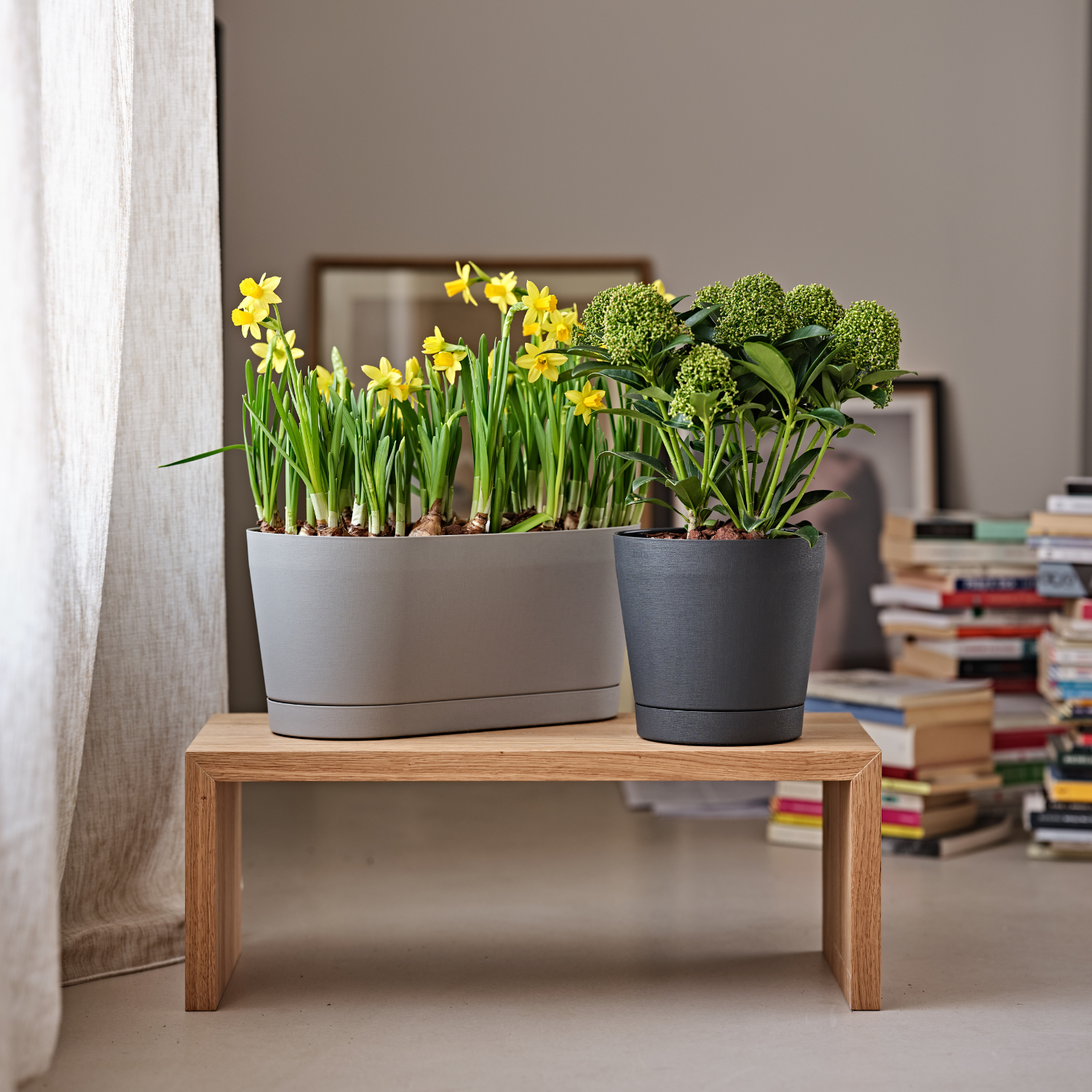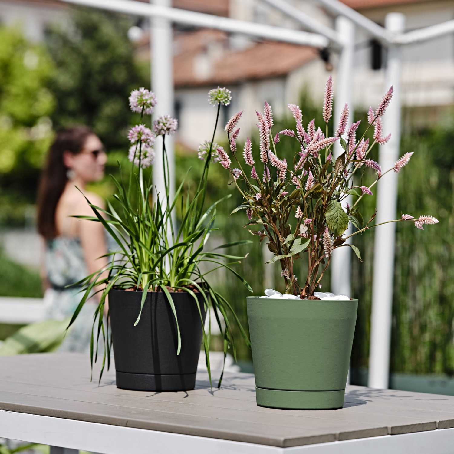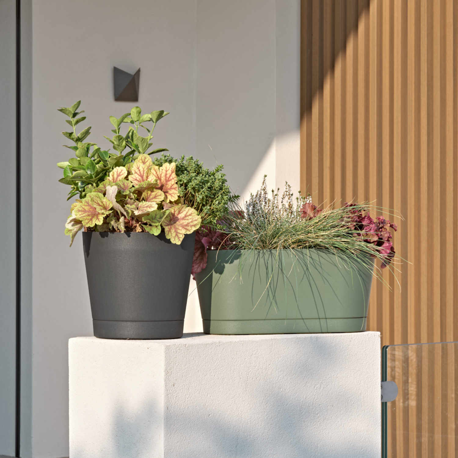 ქოთანს აქვს ჩაშენებული თეფში, რომელიც ზედმეტ წყალს ძირში აგროვებს, რაც ამარტივებს მის ყოველდღიურ მოვლას და ზედაპირების სისუფთავეს ინარჩუნებს. იგი ასევე მედეგია ულტრაიისფერი გამოსხივებისა და ყინვის მიმართ, რაც მის საიმედო გამოყენებას ყველა სეზონის განმავლობაში უზრუნველყოფს.