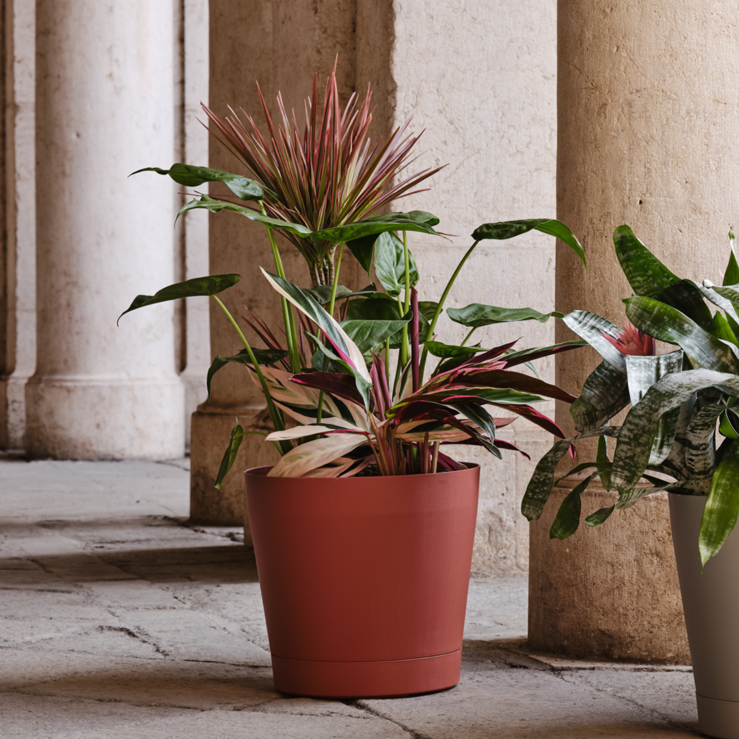 ქოთანს აქვს ჩაშენებული თეფში, რომელიც ზედმეტ წყალს ძირში აგროვებს, რაც ამარტივებს მის ყოველდღიურ მოვლას და ზედაპირების სისუფთავეს ინარჩუნებს. იგი ასევე მედეგია ულტრაიისფერი გამოსხივებისა და ყინვის მიმართ, რაც მის საიმედო გამოყენებას ყველა სეზონის განმავლობაში უზრუნველყოფს.