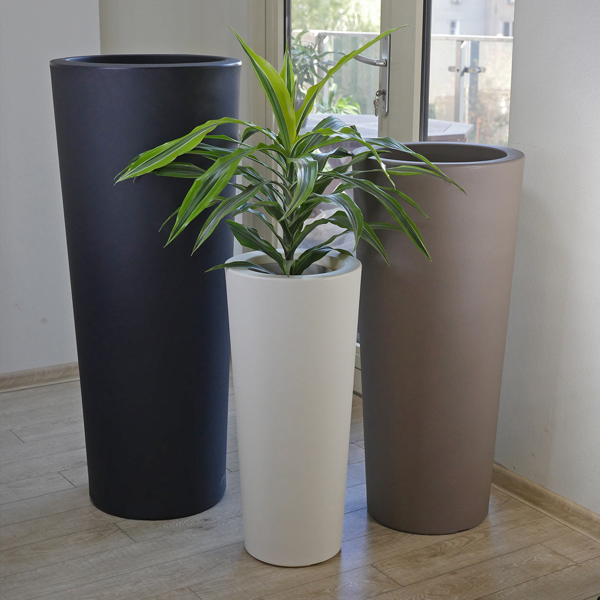 „სკიო კონო“ არის ნატიფი სვეტისებური ფორმის ელეგანტური, მაღალი კაშპო, რომელიც ნებისმიერ სივრცეს ამშვენებს - იდეალურია შესასვლელებისთვის, ტერასებისთვის, ბაღის კუთხეებისთვის ან შიდა სივრცეში გამოყენებისთვის. მისი მინიმალისტური დიზაინი ვერტიკალურ ბალანსს და დახვეწილ შტრიხებს ნებისმიერ ადგილს თუ ინტერიერს სძენს და იდეალურად ერწყმის როგორც თანამედროვე, ისე კლასიკურ გარემოს.