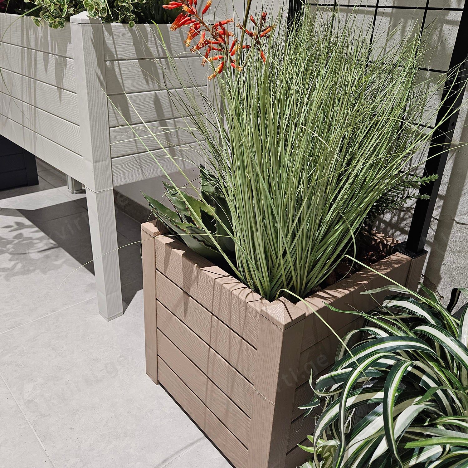 ქოთნის კონსტრუქცია მყარია, აქვს რეგულირებადი „ფეხები“, რომლებიც მისი დონის და მდგრადობის შენარჩუნებას უზრუნველყოფენ არათანაბარ ზედაპირებზეც კი. მასში არის ჩაშენებული წყლის რეზერვუარის ცხაურა მორწყვის სიხშირის შემცირებისთვის და მცენარეთა ჯანსაღი მდგომარეობის ხანგრძლივი შენარჩუნებისთვის.